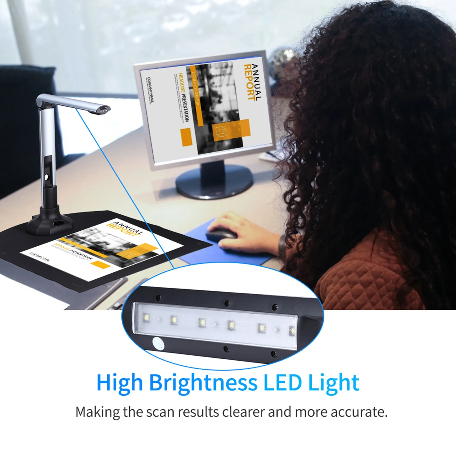 Der tragbare Dokumentenscanner 10MP HD ist ein leistungsstarker faltbarer Scanner, der speziell für das Scannen von Dokumenten, Ausweisen, Rechnungen, Büchern und Zeitschriften entwickelt wurde. Mit einer Auflösung von 3672 x 2856 Pixeln (10 Megapixel) liefert er hochauflösende Bilder in nur etwa 1 Sekunde pro Scan, was die Effizienz im Büro oder zu Hause deutlich erhöht.