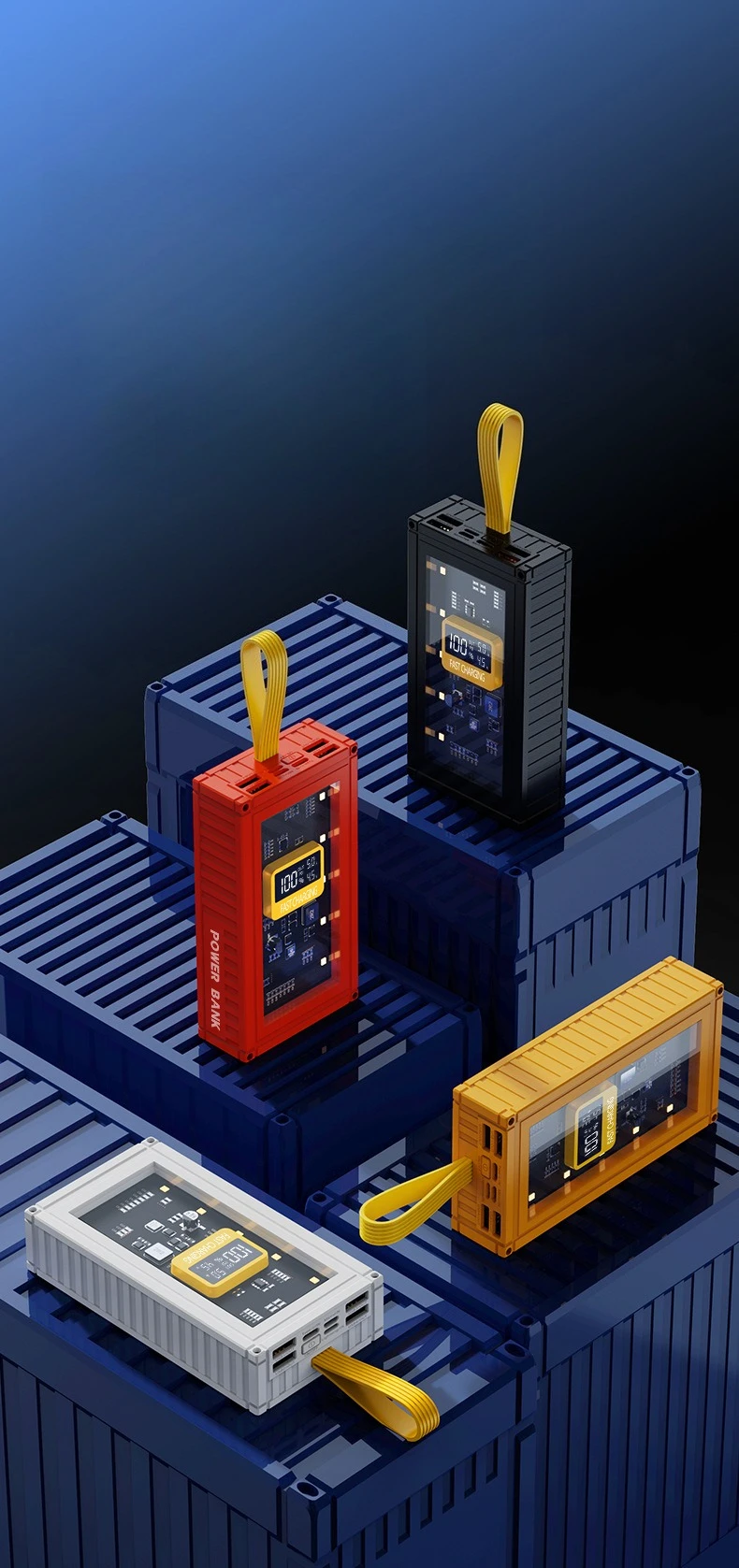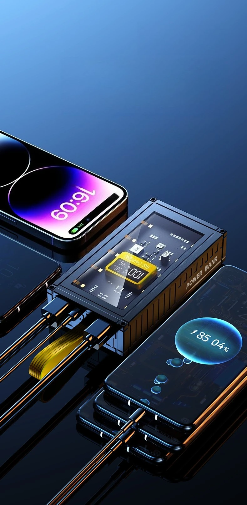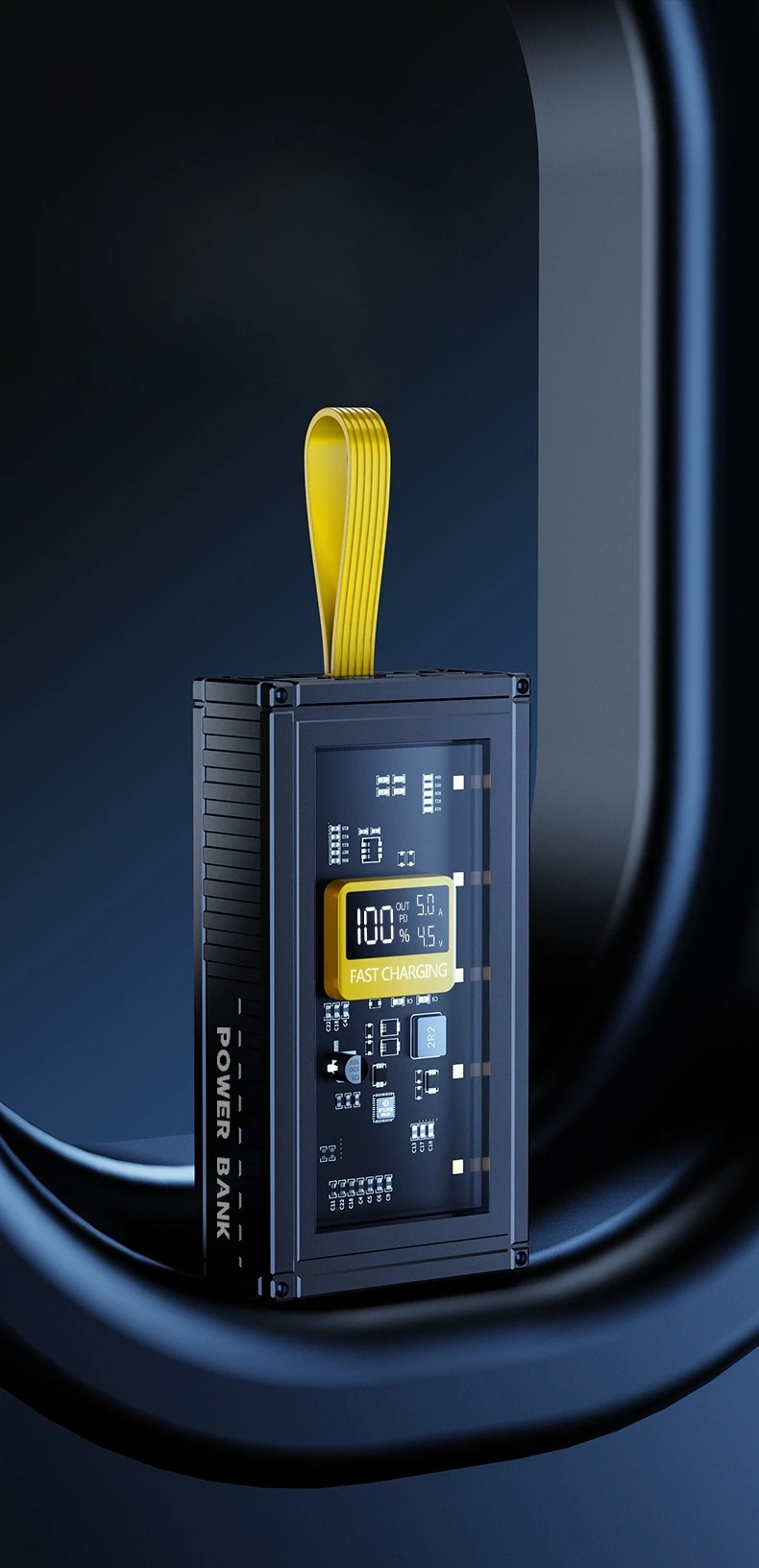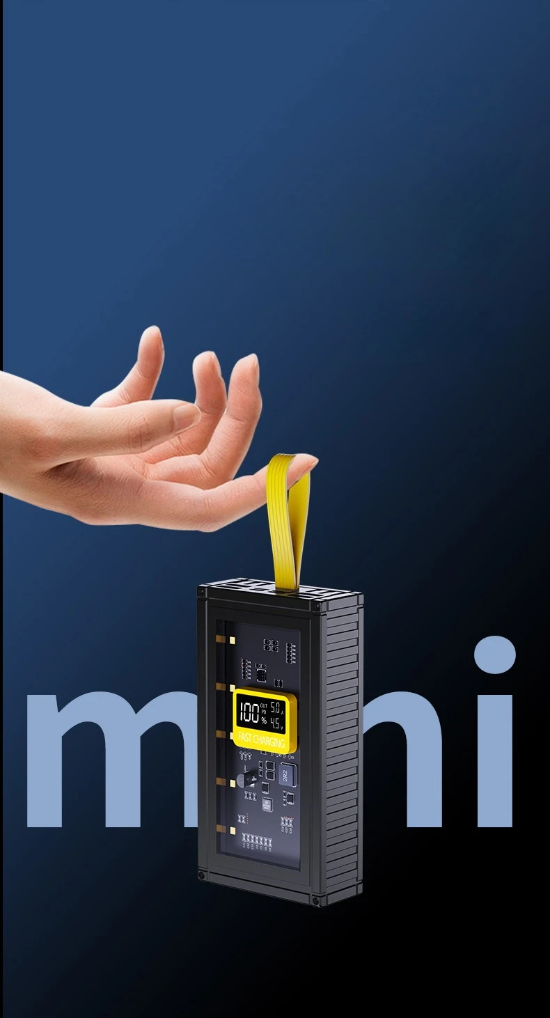 Diese mobile Powerbank mit transparentem Gehäusedesign ist in drei verschiedenen Kapazitätsvarianten erhältlich: 20000mAh, 30000mAh und 50000mAh. Sie bietet ausreichend Energie, um Smartphones, Tablets und andere USB-fähige Geräte mehrfach aufzuladen – ideal für Reisen, Outdoor-Aktivitäten oder den täglichen Einsatz.