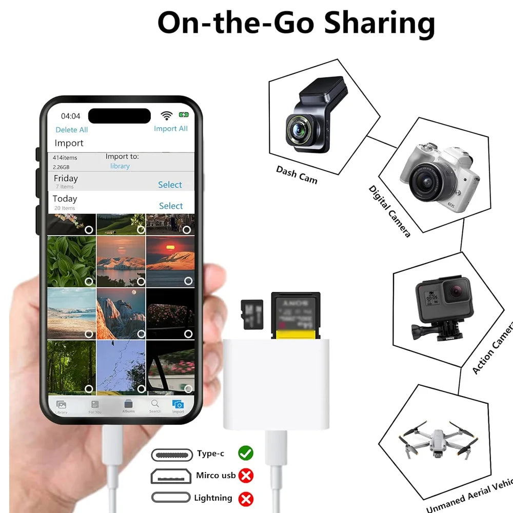 Mit seinen Multi-in-1-Kartenfächern unterstützt er verschiedene Speicherkarten gleichzeitig, was ihn zu einem idealen Begleiter für die Arbeit mit Fotos, Videos und Dokumenten macht. Der Adapter ist kompatibel mit iPad 16, 15 Pro, Samsung, Huawei und anderen Geräten mit Typ-C-Anschluss. Sein kompaktes, tragbares Design erleichtert die Nutzung unterwegs und bietet eine zuverlässige Speichererweiterung für alle mobilen Geräte.