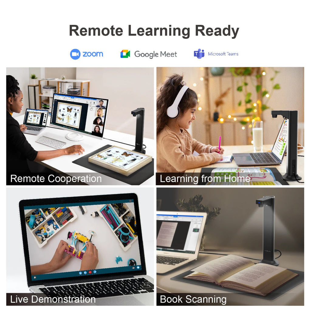Der Scanner ist UVC/UAC-kompatibel und eignet sich daher optimal für den Fernunterricht oder Videokonferenzen über Plattformen wie Zoom, Google Meet oder Microsoft Teams. Physische Objekte und Dokumente können in Echtzeit präsentiert werden, was den Unterricht oder Meetings interaktiver gestaltet.