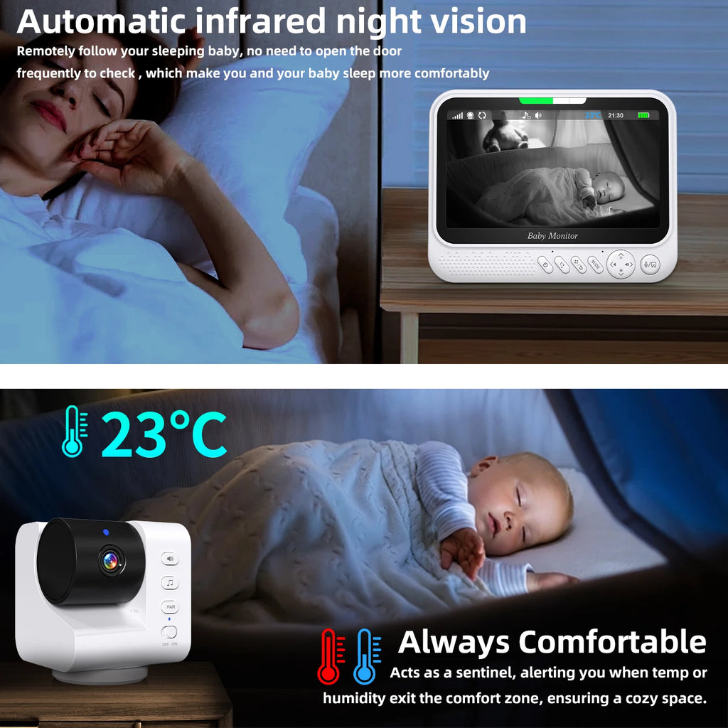 Die integrierte automatische Nachtsicht sorgt für eine klare Sicht auch in völliger Dunkelheit. Ohne störendes rotes Licht bleibt der Schlaf Ihres Babys ungestört. Der leistungsstarke 5000 mAh Akku ermöglicht bis zu 20 Stunden Betrieb mit VOX-Modus – ideal für den Einsatz über Tag und Nacht.