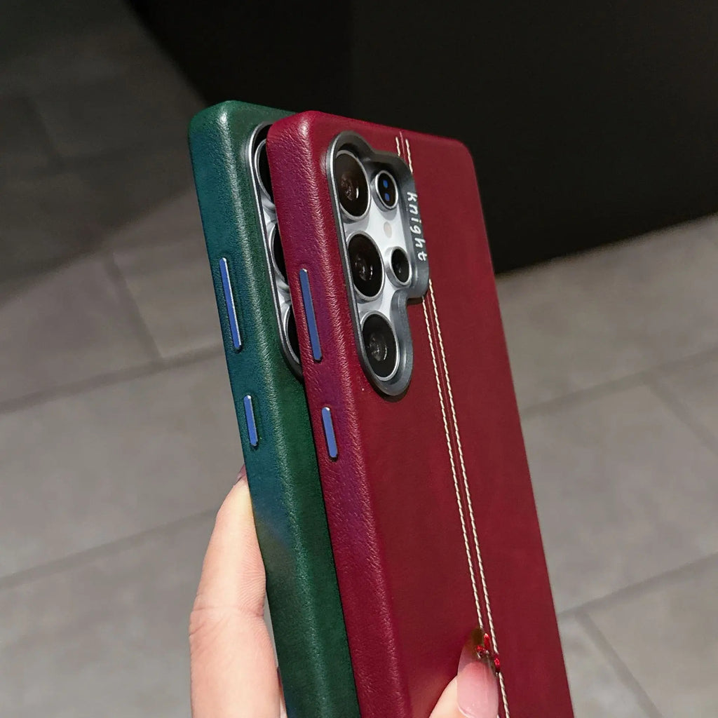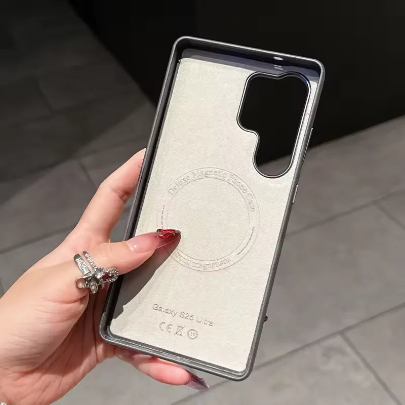Vintage Leder Magsafe Hülle für Samsung S24 & S25 – Stoßfest & Kabellos