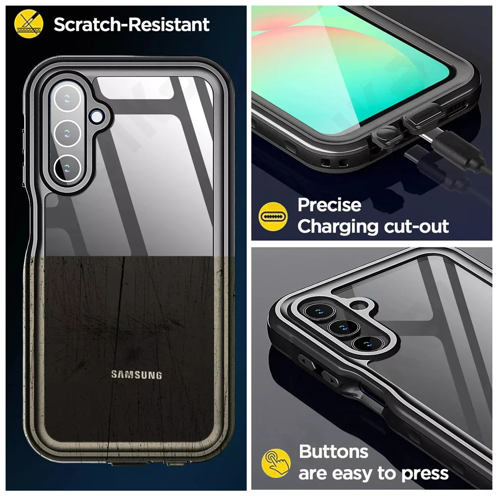 Die Hülle besteht aus einer stabilen Dual‑Schicht aus PC und TPU, die eisernen Schutz bietet und gleichzeitig flexibel genug ist, um Stürze sicher abzufangen. Dank magnetischer Verschlüsse bleibt die Klappe sicher geschlossen, ohne zu verrutschen. Die Struktur ist staubdicht, kratzfest, rutschfest und eignet sich sogar für Unterwasser-Anwendungen. Mit IP68-Zertifizierung kannst du dein Handy beim Schwimmen, Tauchen oder im Regen schützen.