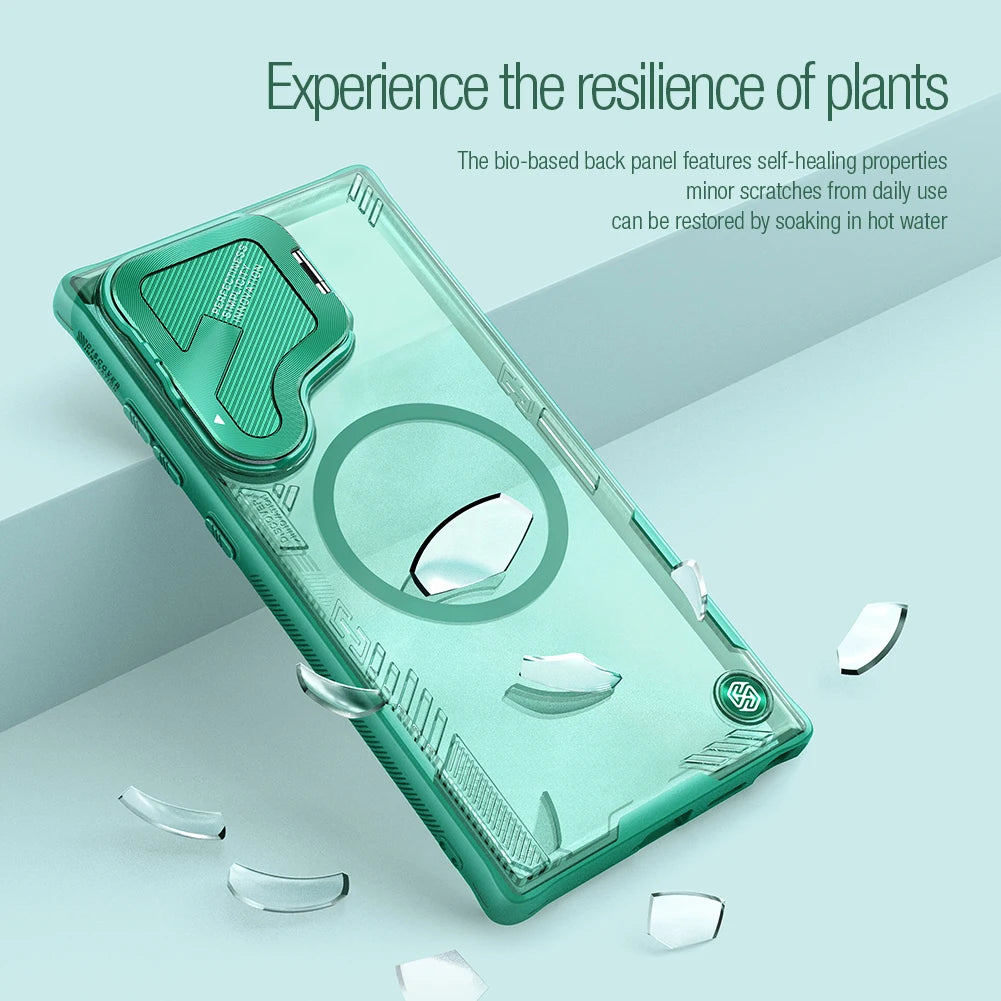 Diese halbumschließende Schutzhülle wurde speziell für das Samsung Galaxy S24 Ultra entwickelt und kombiniert eine weiche Silikonrahmen mit einem harten, klaren Rückcover. Das Material besteht aus umweltfreundlichen, biobasierten Rohstoffen aus Mais und Zuckerrohr, die zur Reduzierung von CO2-Emissionen beitragen und Nachhaltigkeit fördern. Die Hülle bietet eine hohe Korrosionsbeständigkeit und bleibt über die Zeit klar, ohne zu vergilben, was das stilvolle Design unterstreicht.