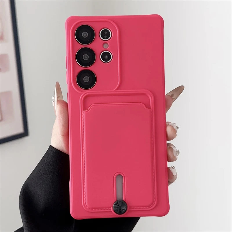 Weiche Silikonhülle mit Kartenhalter für Samsung S25 S24 S23 und mehr – Flexibler Schutz mit praktischem Kartenfach