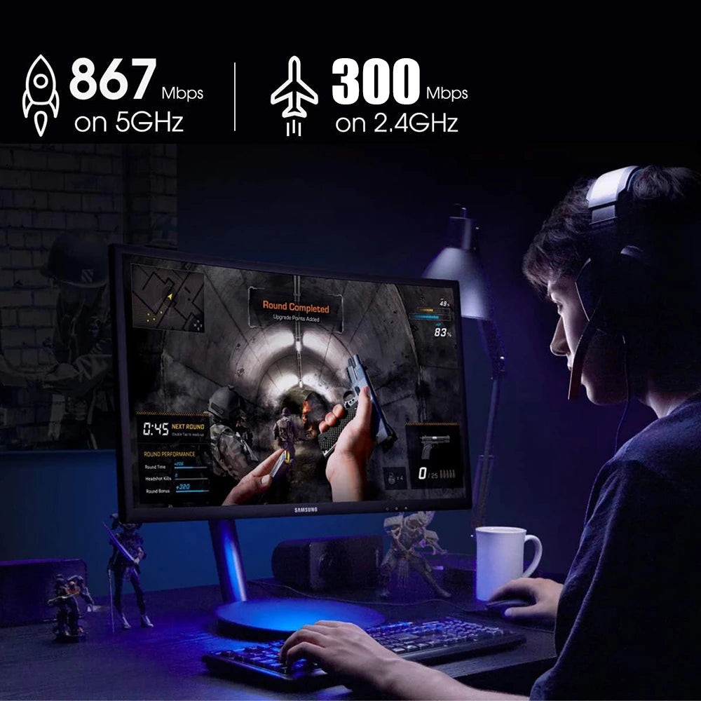 WLAN-Geschwindigkeit: 2,4 GHz – 300 Mbit/s / 5 GHz – 867 Mbit/s